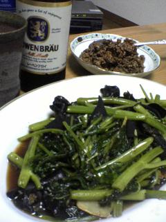 空心菜って扱ったのは初めてなのですが、意外に油をたくさん必要とする野菜でした。油をケチるとしなびるばっかで美味しくない。湯通しか油通しをした後に、強火で一気にソースと絡めるのがいいのかもしれません。
